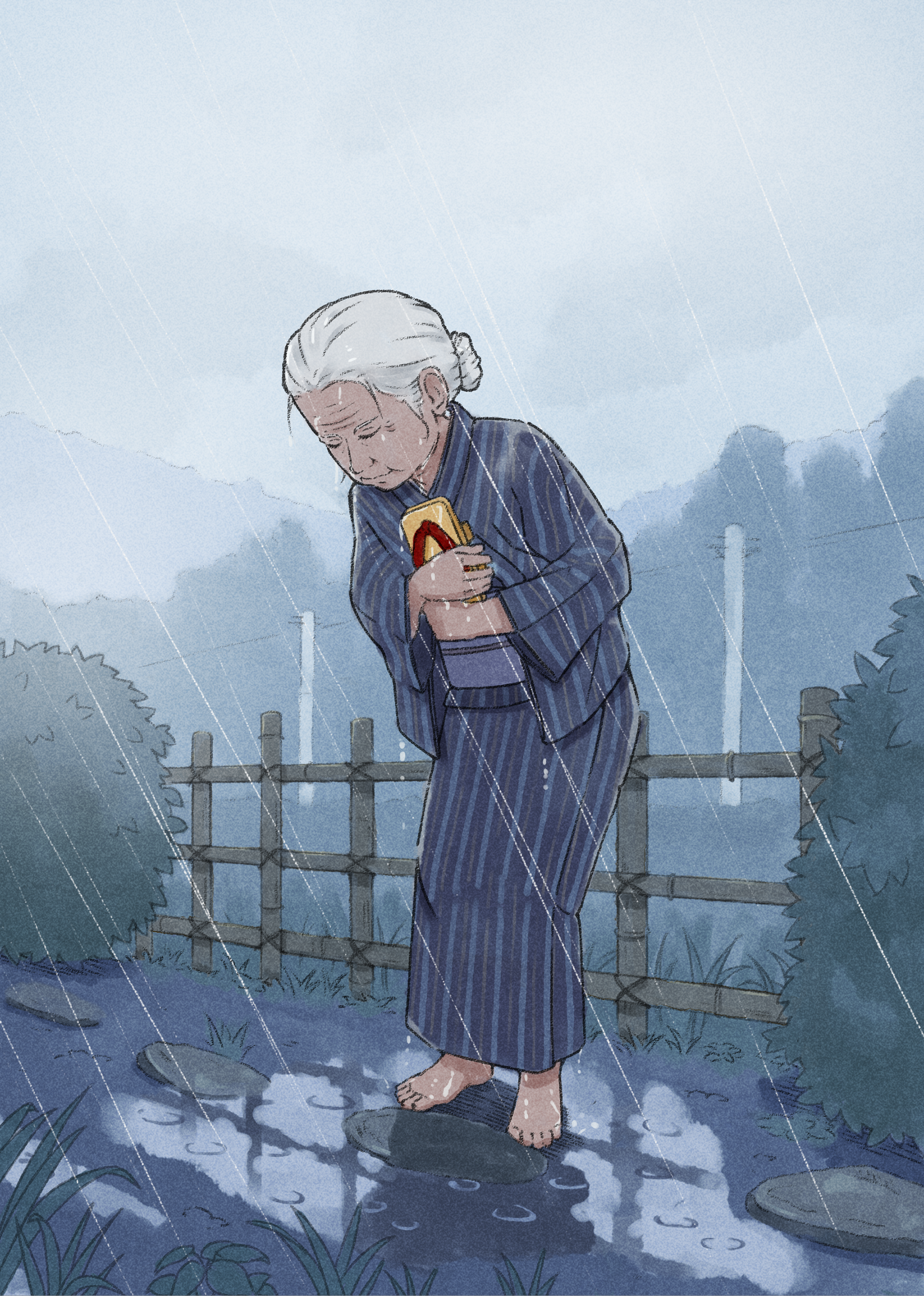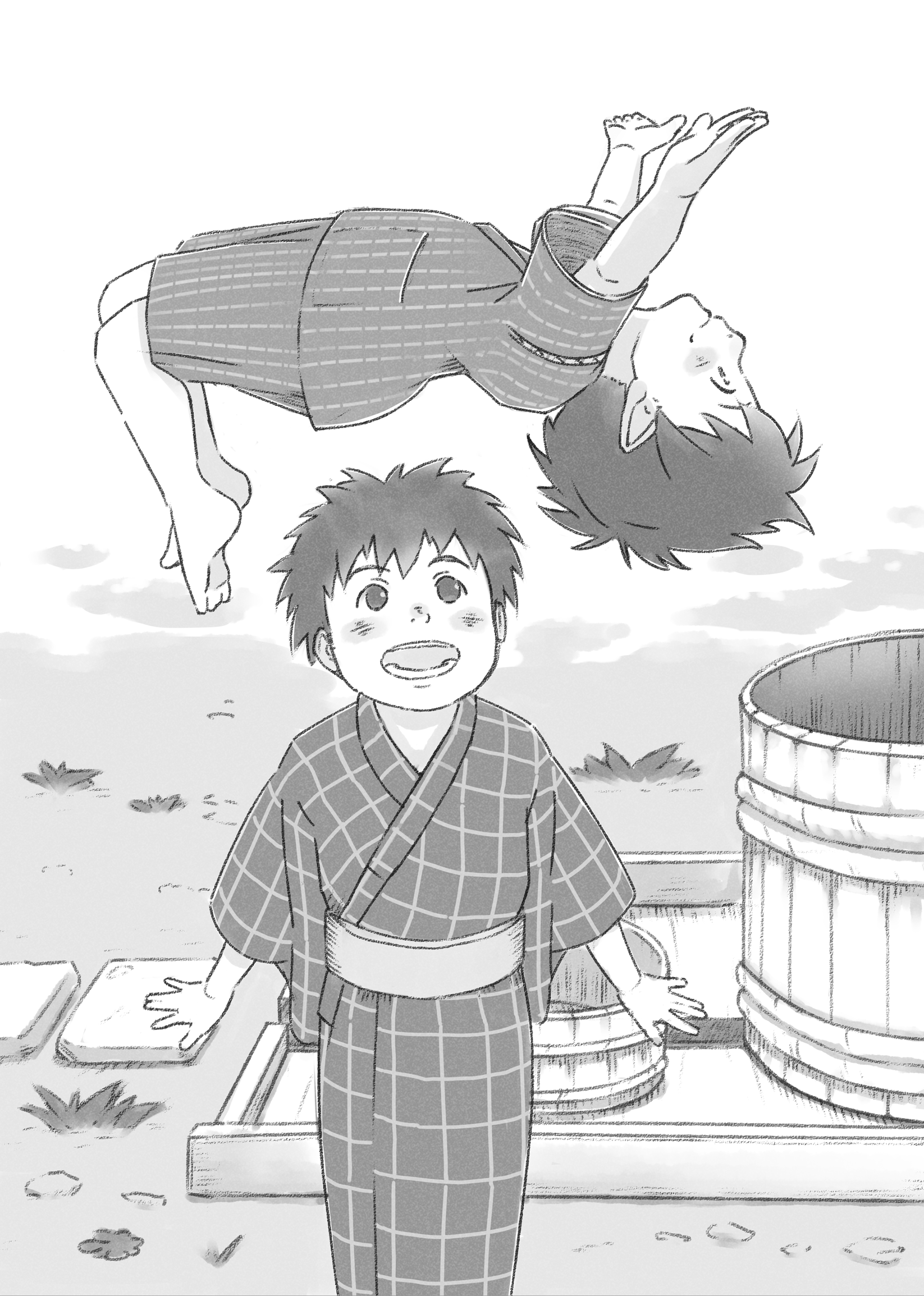 かがみの世界に入ってしまった女の子のお話『おばあちゃんのかがみ』、ひみつの小びんの液体を飲んじゃったら……『犬になったさっちゃん』、おじいさんが流した涙のわけ『お仏飯』、キツネと人間の心の交流を描く『源三じいさまとキツネの銀三』そして表題にもなっている、片方だけのげたの隠された悲話『まっ赤なはなおの片方のげた』。
