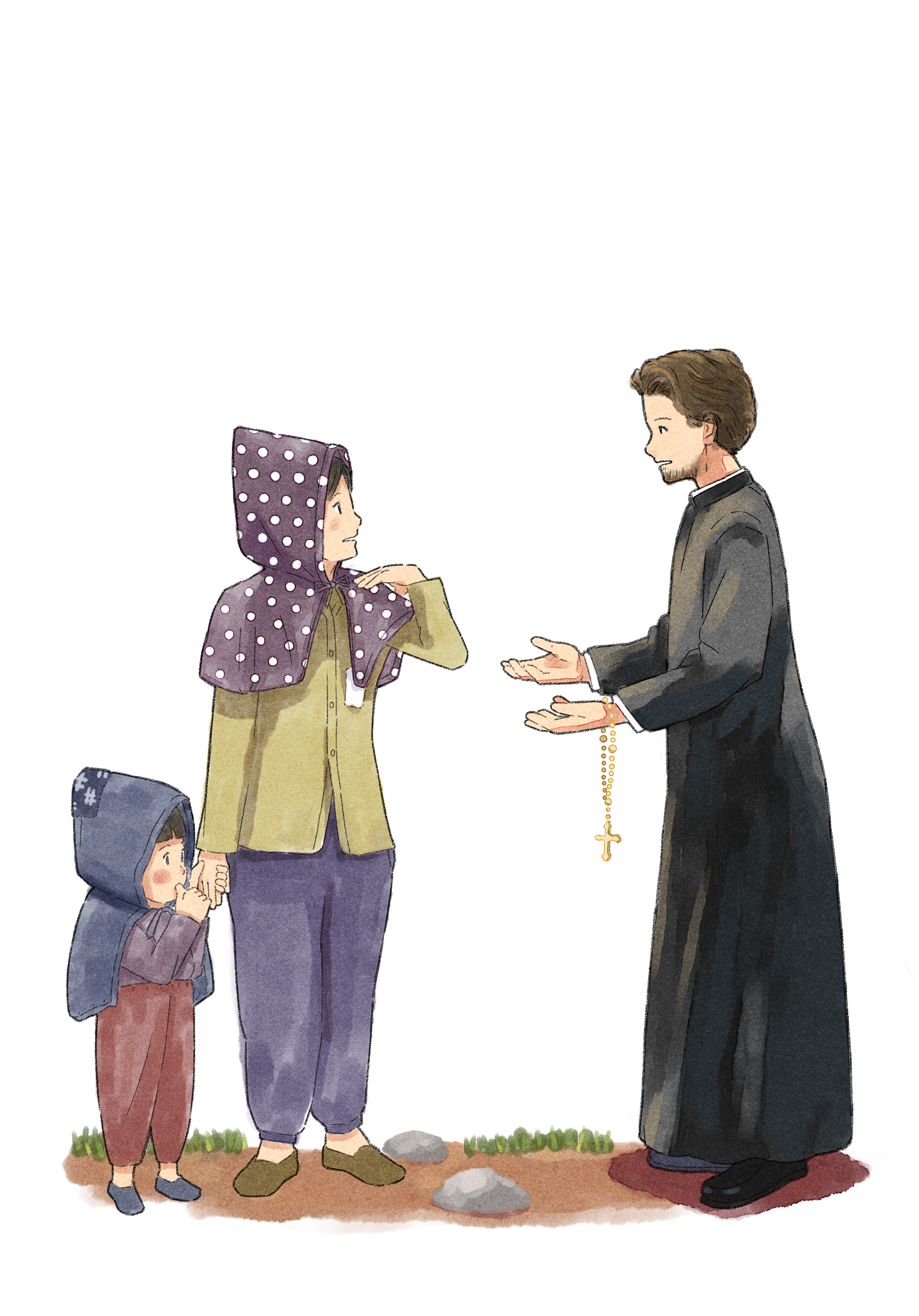 神父はひとり、歩き続ける――。「女の人」を捜しながら。《「はだしの女の人を見ませんでしたか?」男の人がこたえました。「はい、見ました。くり色の長い髪をしていました」「たいへん、たすかります」男の人に頭を下げて、神父さまはさらに歩いていきました。(本文より)》彼が探し求めていたものとは……。戦いのない未来のために、私たちができることは何かを問いかける絵本。